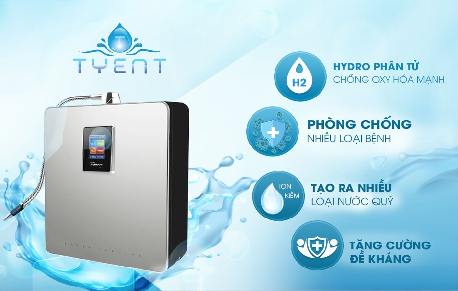 Máy lọc nước điện giải ion kiềm Tyent được TyentVietNam phân phối chính hãng tại Việt Nam. Sản phẩm được các nhà khoa học công nhận là thiết bị chuẩn y tế giúp tạo ra nguồn nước điện giải ion kiềm có lợi cho sức khỏe, ngăn ngừa và hỗ trợ điều trị một số bệnh lý mãn tính như mỡ máu, tiểu đường, tim mạch, huyết áp, suy thận,… Ngoài ra, máy điện giải Tyent không chỉ là “vũ khí” chăm sóc sắc đẹp của phụ nữ Nhật Bản mà còn là bí quyết trường thọ của các quốc gia như Mỹ, Anh, Pháp, Nga….